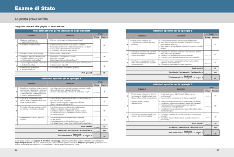 Questa griglia contiene una proposta di descrittori e di punteggi, elaborata a partire dalla Griglia di valutazione per la prima prova