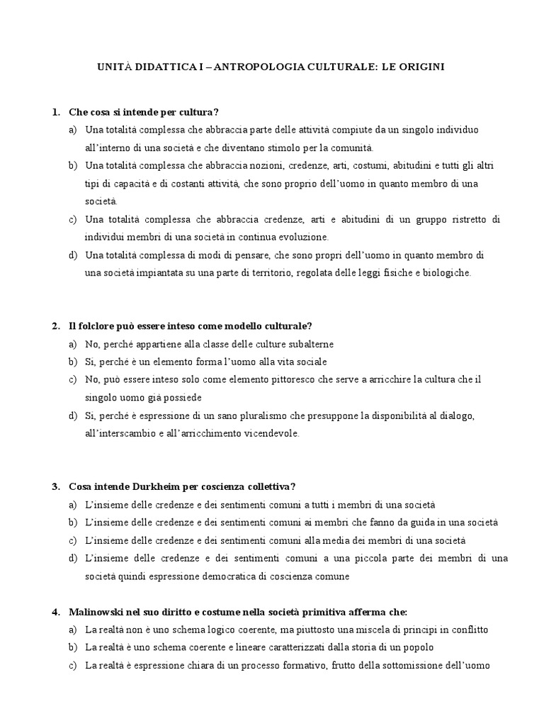 1. Che cosa si intende per cultura?