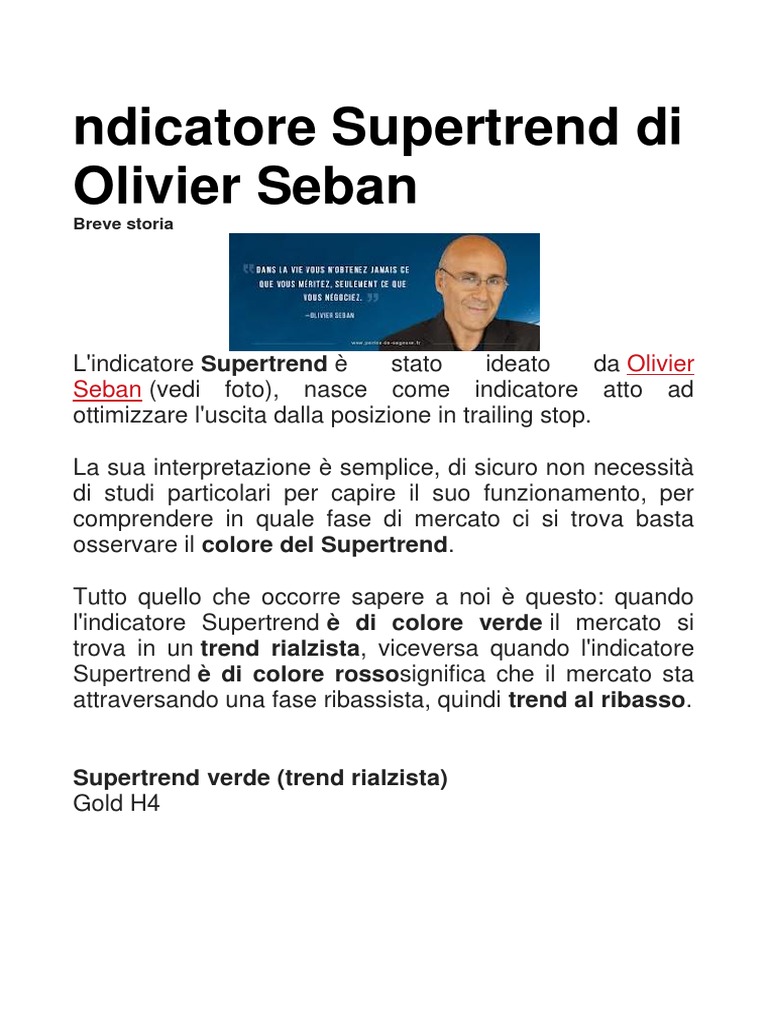 L'indicatore Supertrend è stato ideato da Olivier