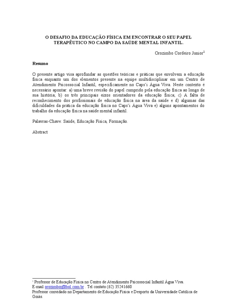 Palavras-Chave: Saúde, Educação Física, Formação.