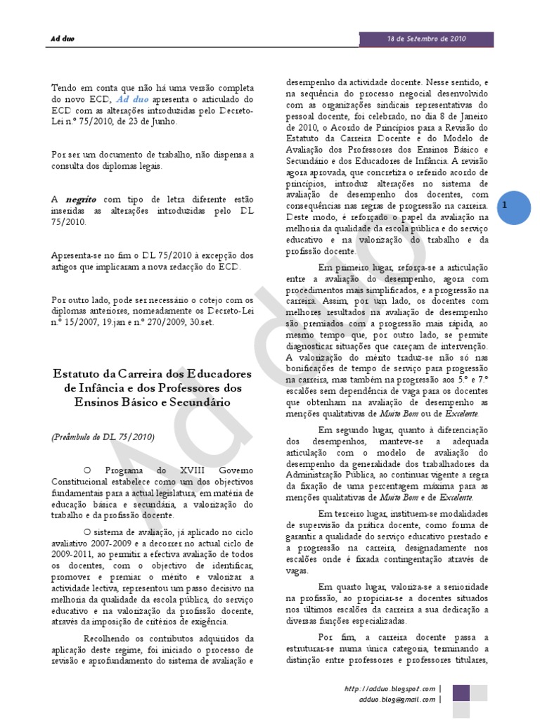 artigos que implicaram a nova redacção do ECD. Em primeiro lugar, reforça-se a articulação