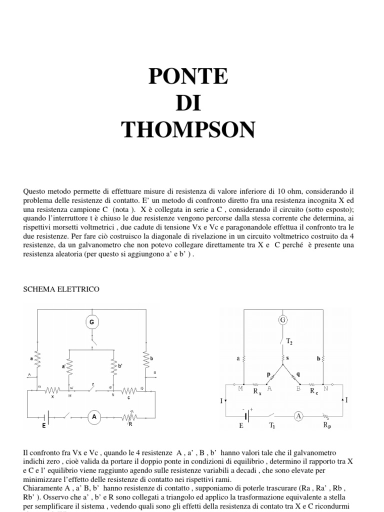 problema delle resistenze di contatto. E’ un metodo di confronto diretto fra una resistenza incognita X ed