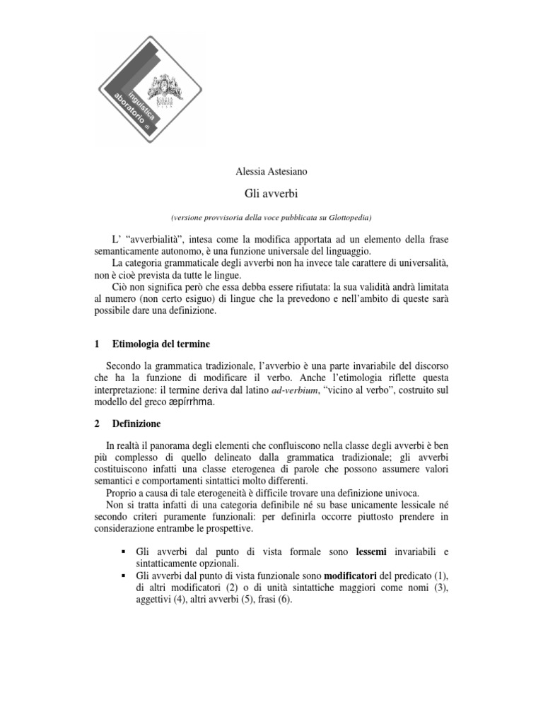 Gli avverbi dal punto di vista formale sono lessemi invariabili e