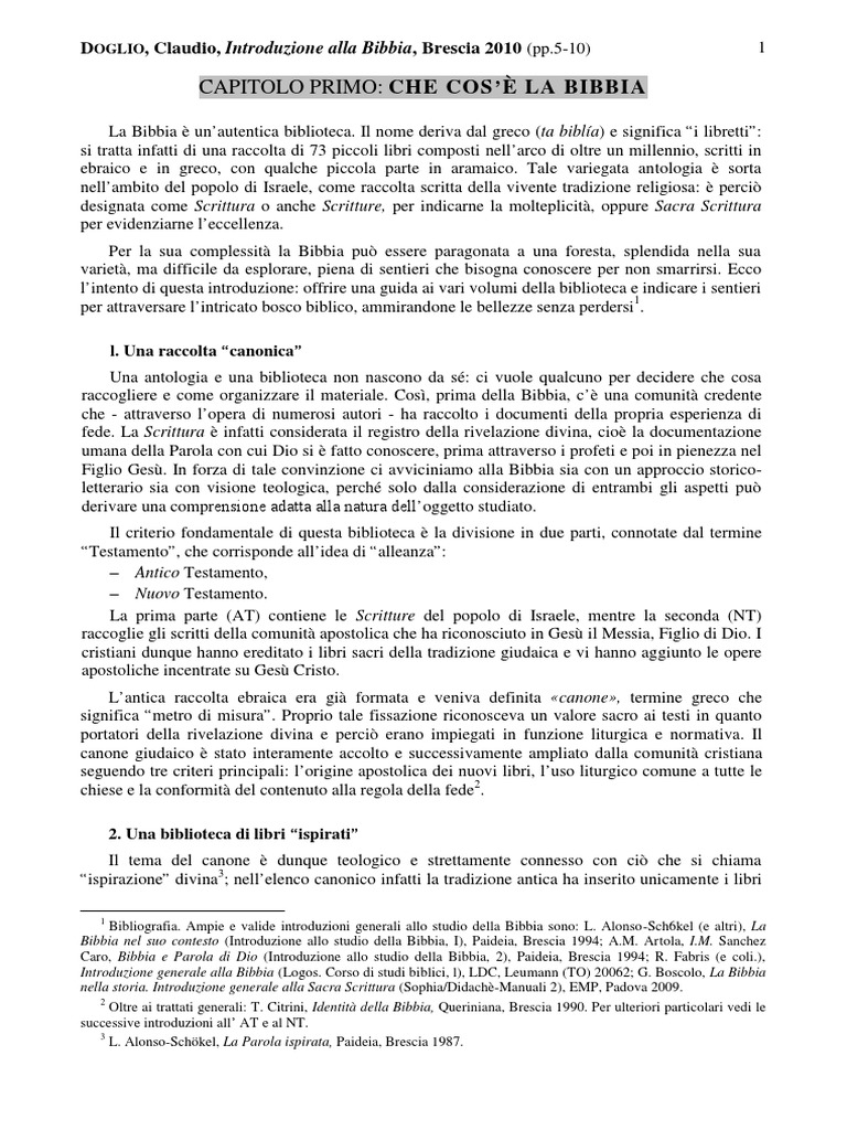 DOGLIO, Claudio, Introduzione alla Bibbia, Brescia 2010 (pp.5-10) 2