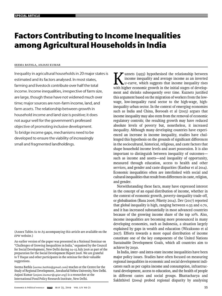 Anjani Kumar (anjani.kumar@cgiar.org) is a researcher at the in different castes and social groups. Bhattacharya and