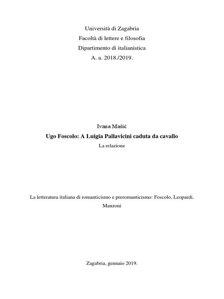 Ugo Foscolo: A Luigia Pallavicini caduta da cavallo