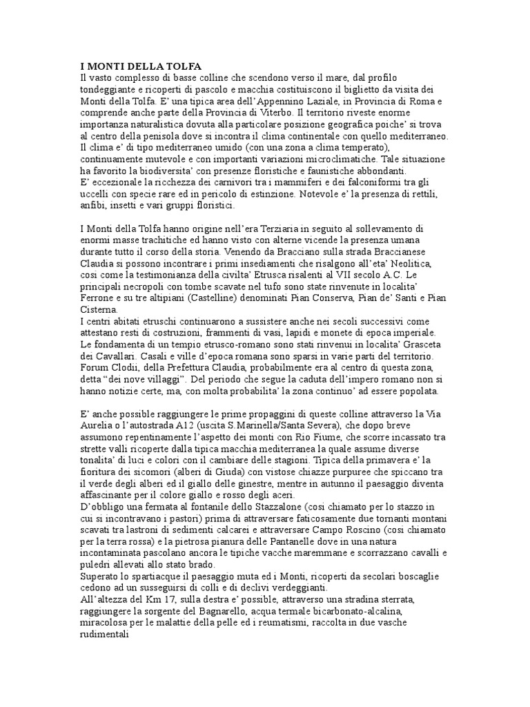 Monti della Tolfa. E’ una tipica area dell’Appennino Laziale, in Provincia di Roma e