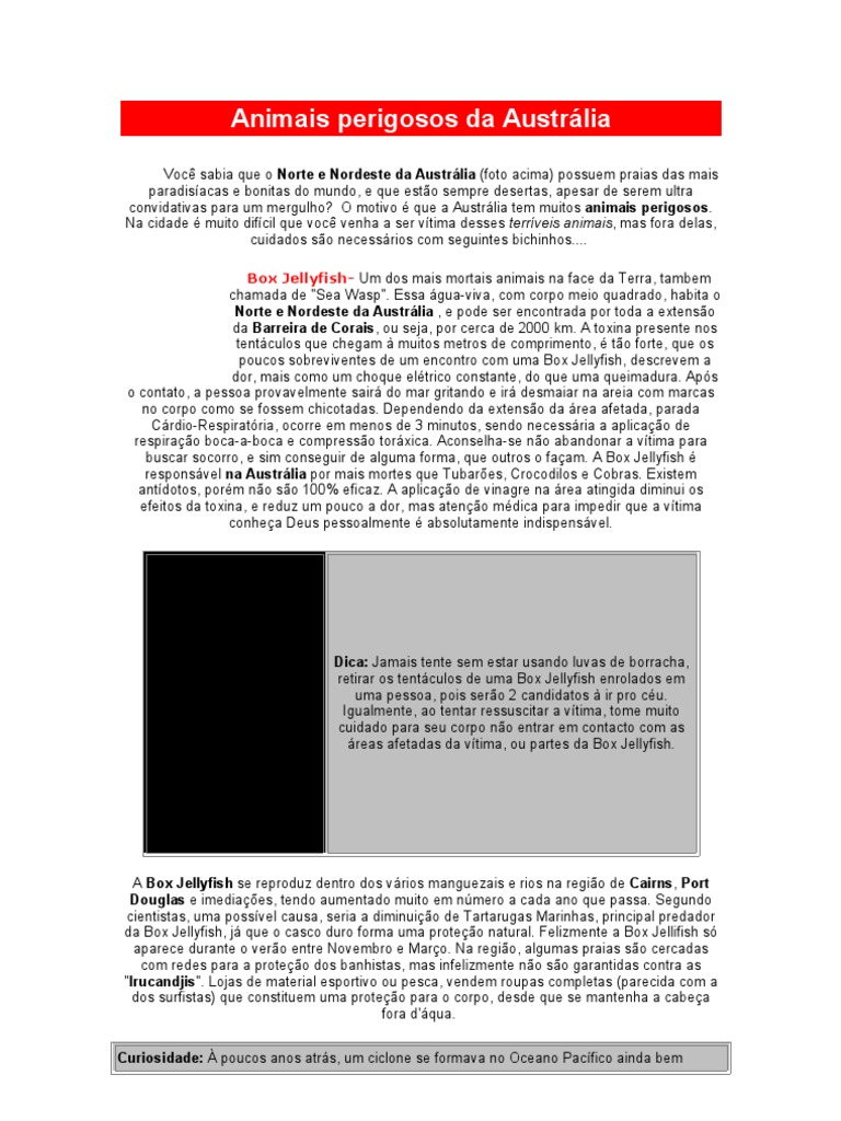 convidativas para um mergulho? O motivo é que a Austrália tem muitos animais perigosos.