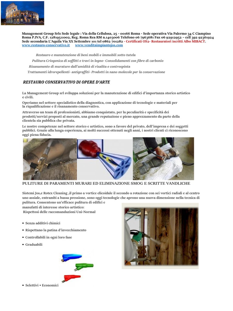 Sede secondaria L’Aquila Via XX Settembre 101 tel 0862 701282 - Certificati OS2- Restauratori iscritti Albo MIBACT.
