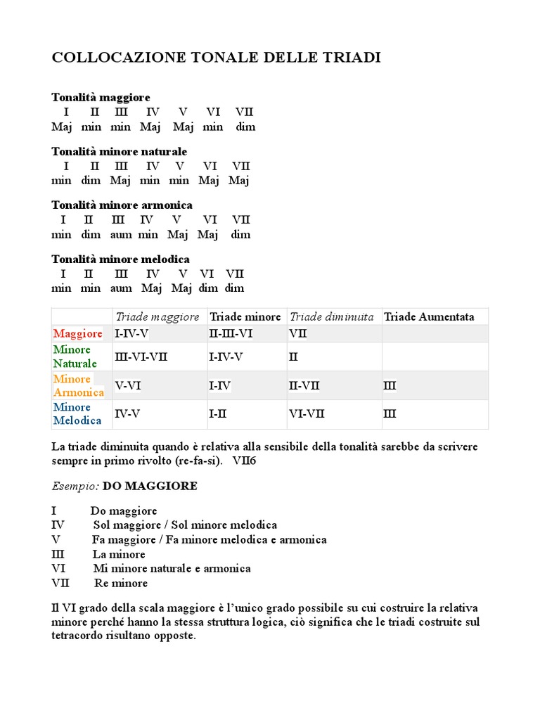 COLLOCAZIONE TONALE DELLE TRIADI