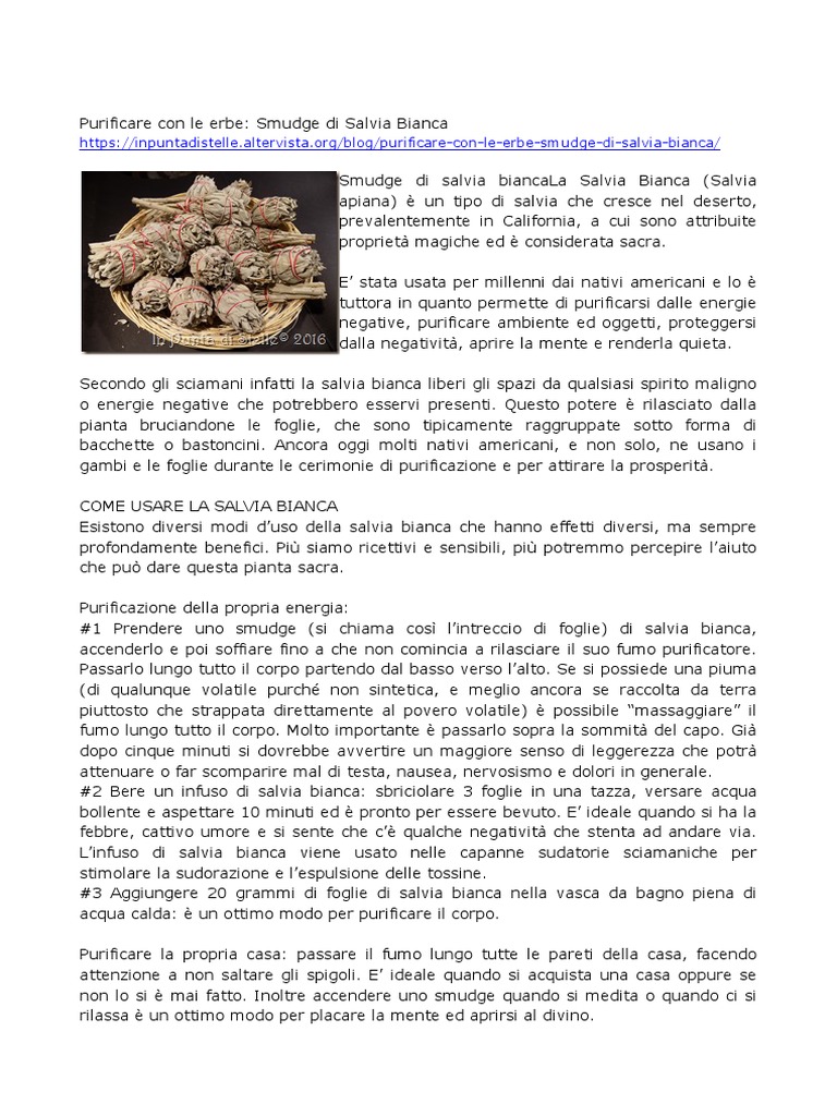 Esistono diversi modi d’uso della salvia bianca che hanno effetti diversi, ma sempre