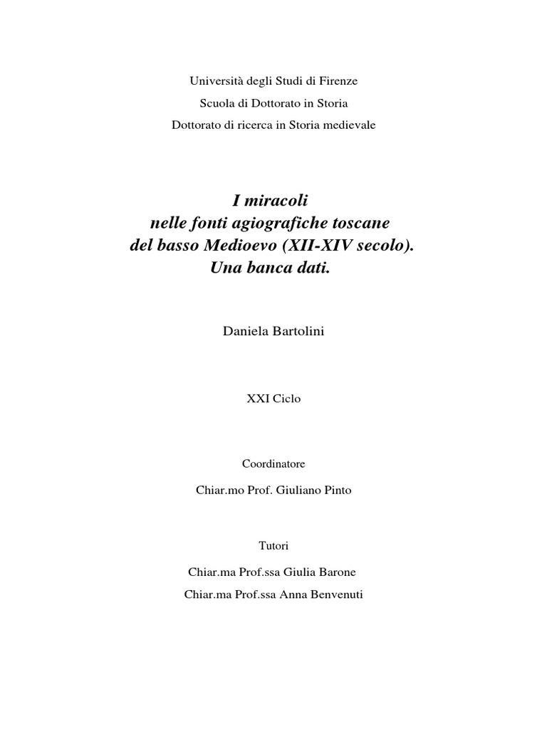 ALLEGATO Database “I Miracoli nelle fonti agiografiche toscane tra XII e XIV