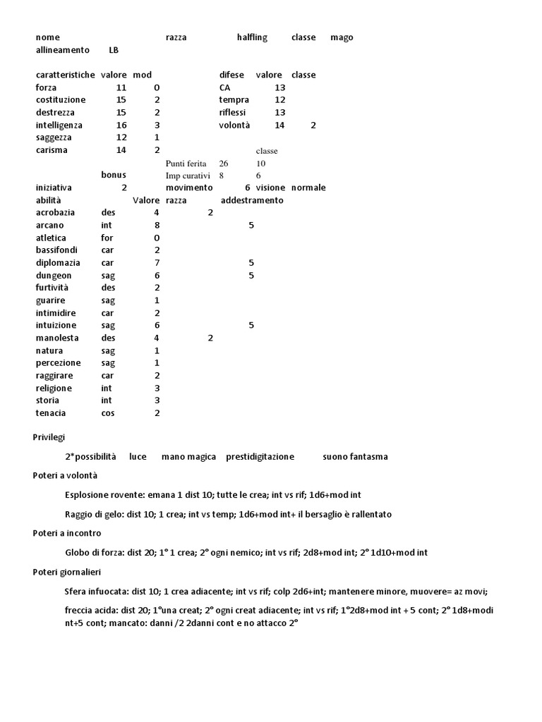 nome razza halfling classe mago