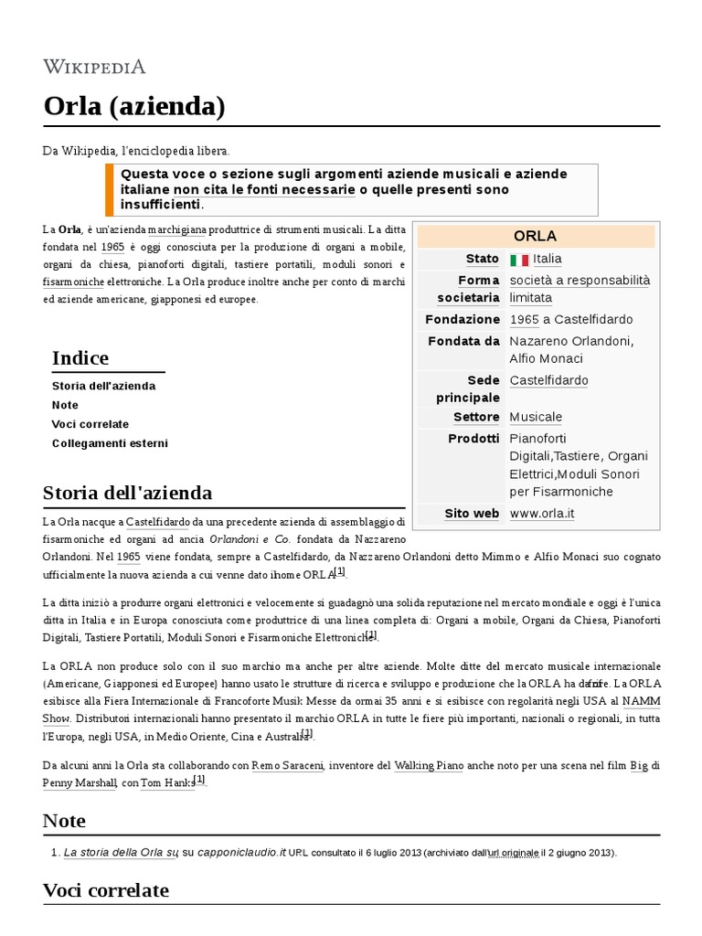 fisarmoniche elettroniche. La Orla produce inoltre anche per conto di marchi Forma società a responsabilità