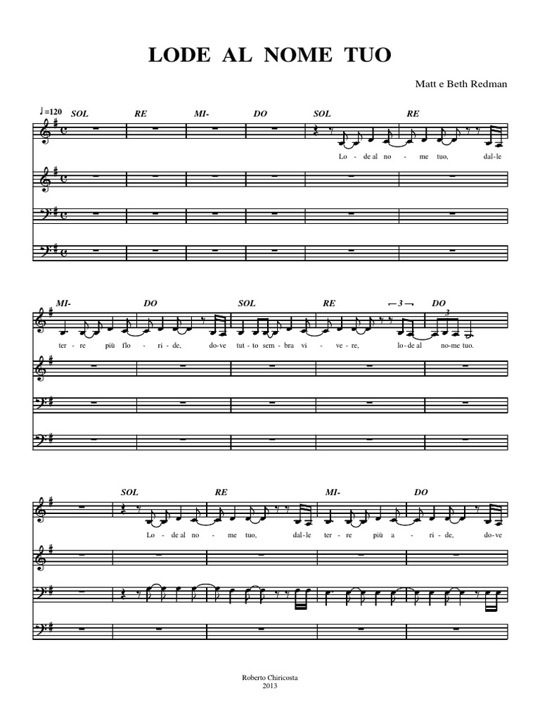 tut - to sem - bra ste - ri - le, lo - de al no - me tuo. Tor - ne - rà a lo-