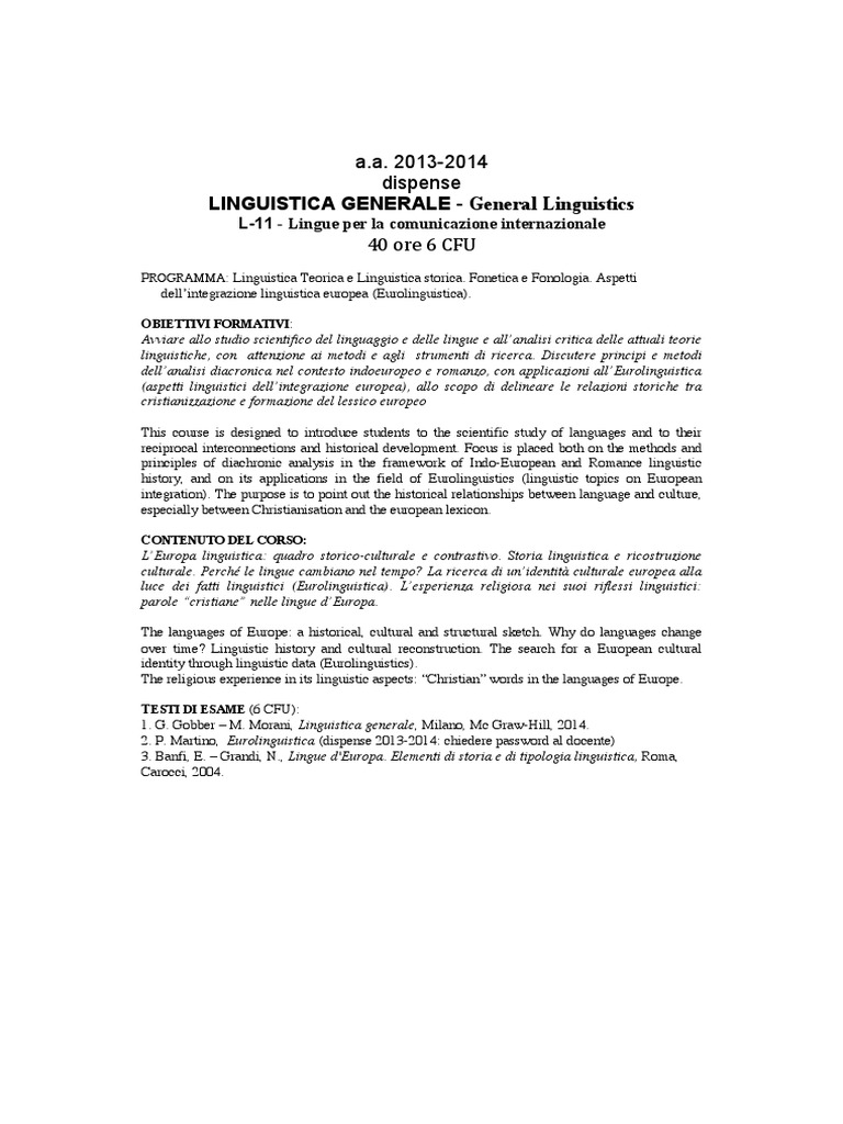 LINGUISTICA GENERALE - General Linguistics