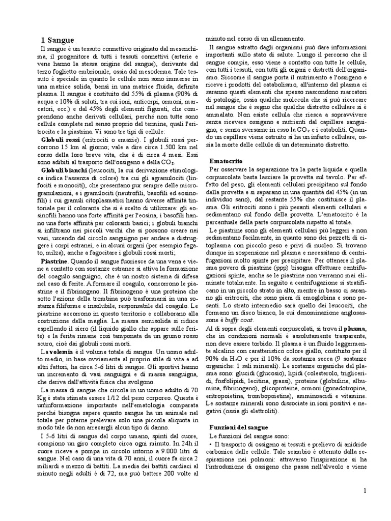 catori, ecc.) e dal 45% degli elementi figurati, che com- nel sangue che è segno che qualche distretto cellulare si è