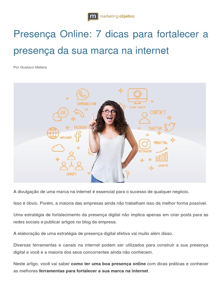 Presença online se refere à forma como a sua marca é exposta na internet e percebida pelos