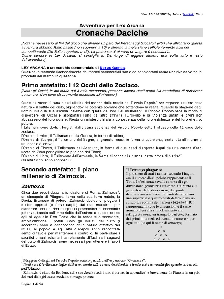 Secondo antefatto: il piano millenario di Zalmoxis. ........................................................................................................... 1