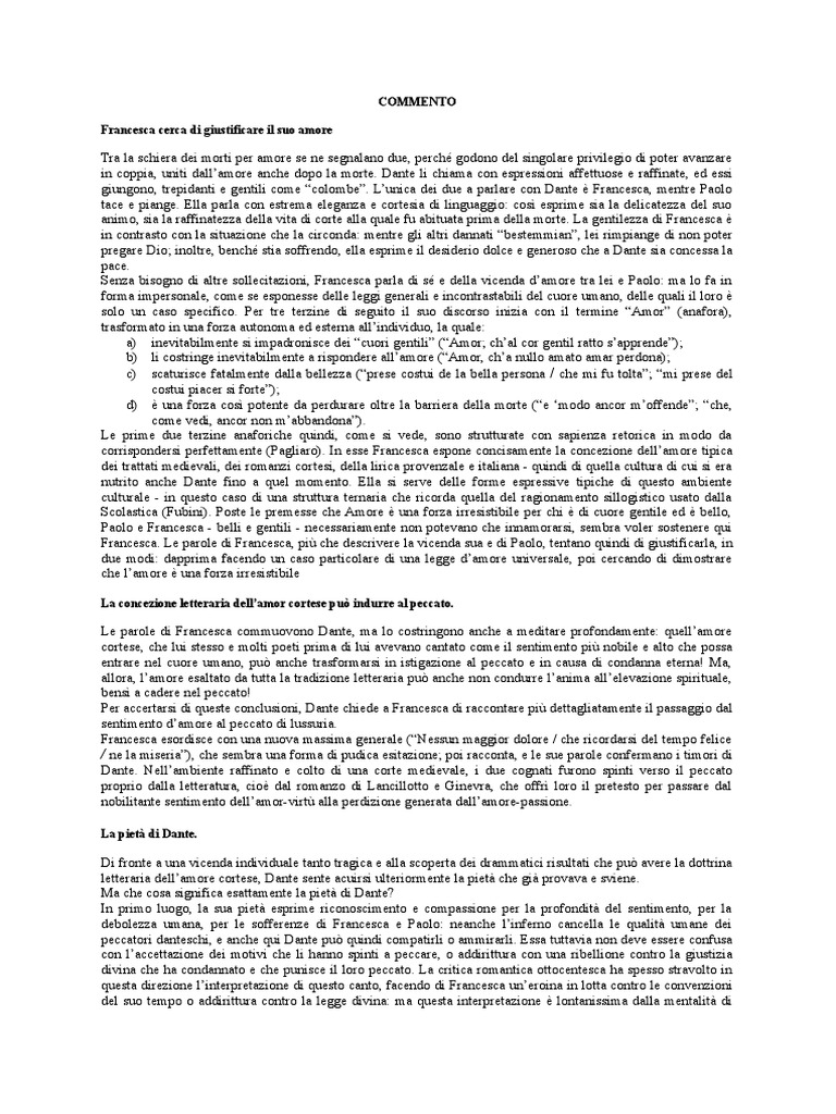 corrispondersi perfettamente (Pagliaro). In esse Francesca espone concisamente la concezione dell’amore tipica