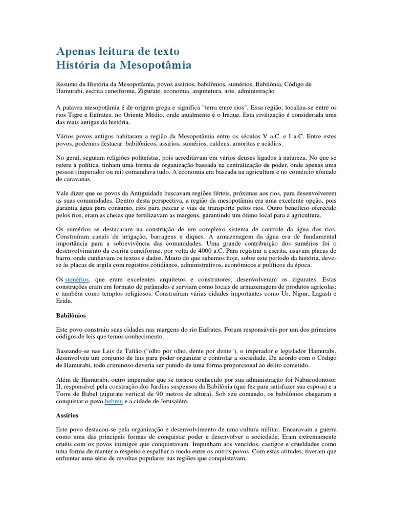 Resumo da História da Mesopotâmia, povos assírios, babilônios, sumérios, Babilônia, Código de
