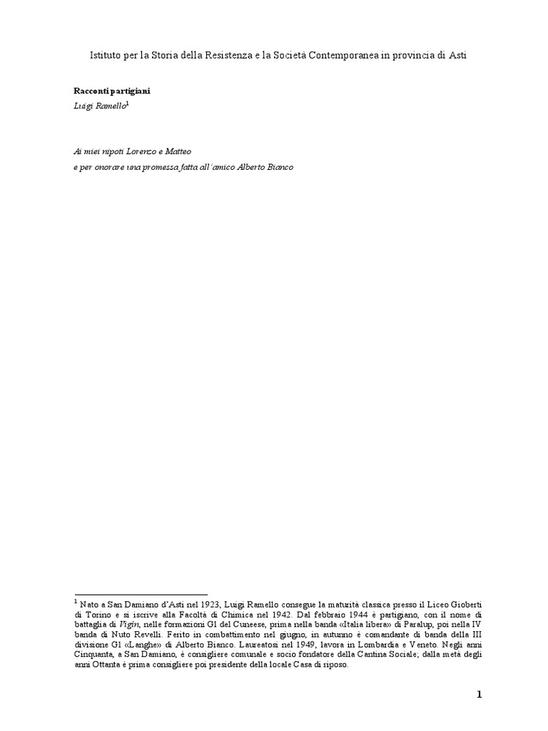Nato a San Damiano d’Asti nel 1923, Luigi Ramello consegue la maturità classica presso il Liceo Gioberti