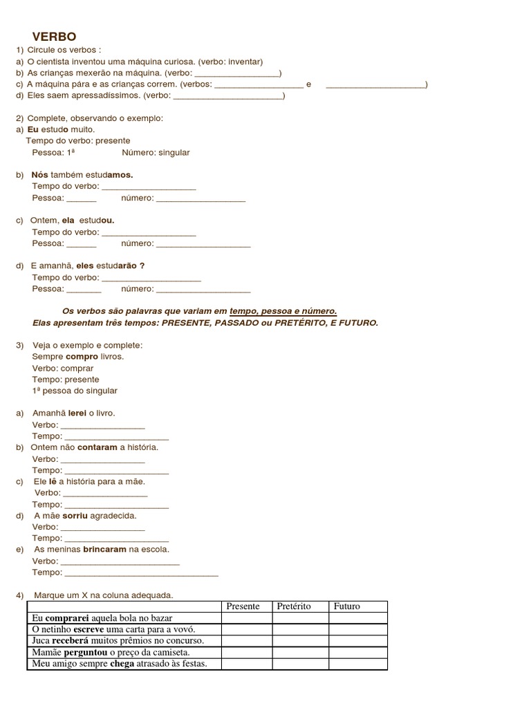 Os verbos são palavras que variam em tempo, pessoa e número.