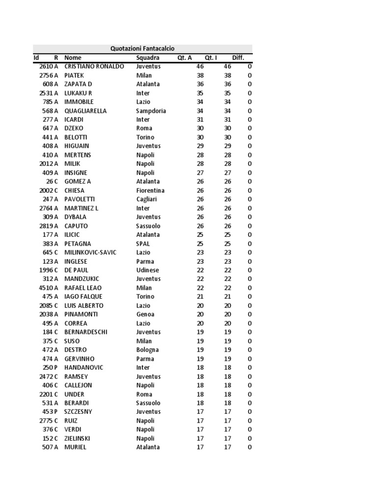 Quotazioni Fantacalcio
