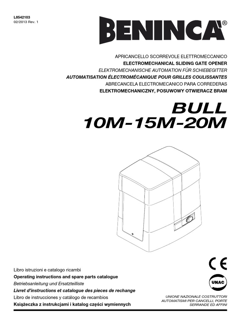 Gerät besitzt die Kennzeichnung EU und es wurden original BENINCA’ Einzelkomponenten verwendet.