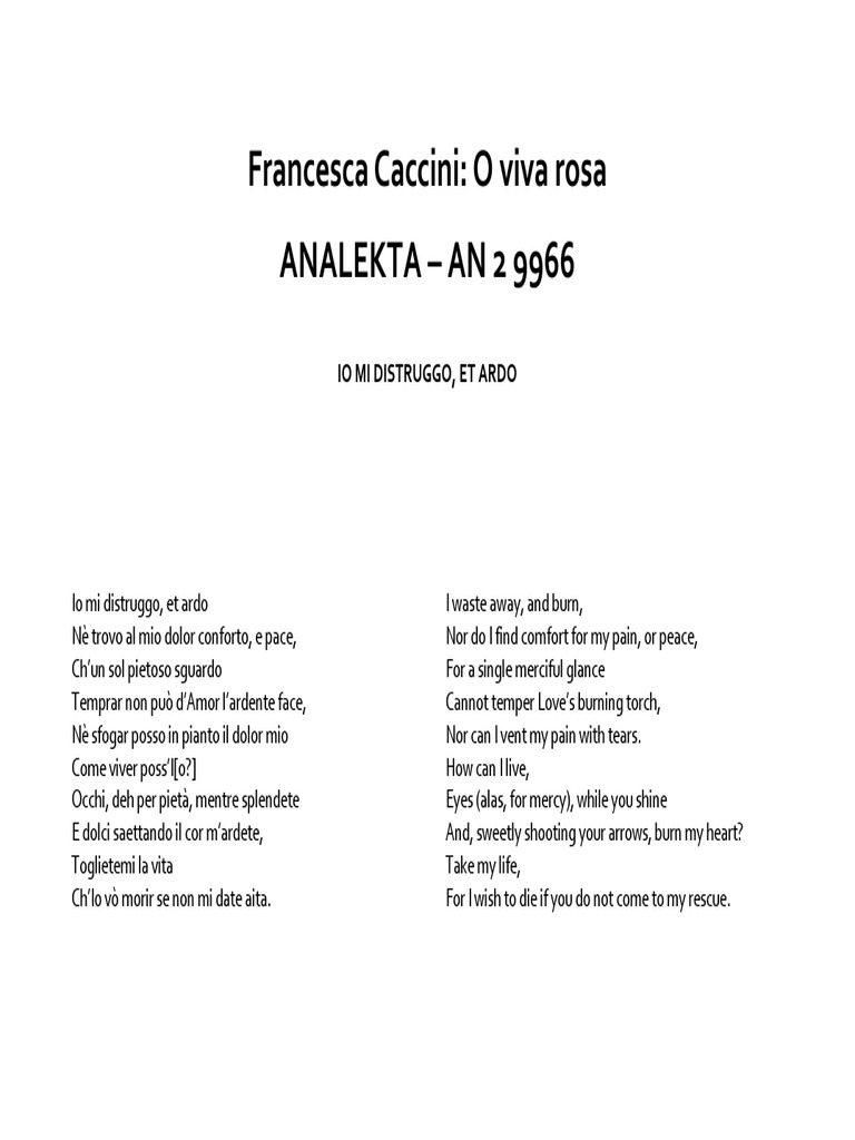 Ch’Io vò morir se non mi date aita. For I wish to die if you do not come to my rescue.