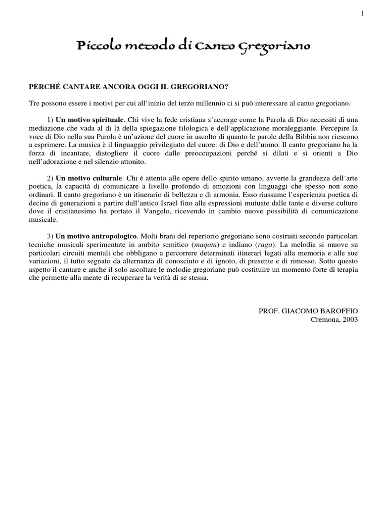 3) Un motivo antropologico. Molti brani del repertorio gregoriano sono costruiti secondo particolari