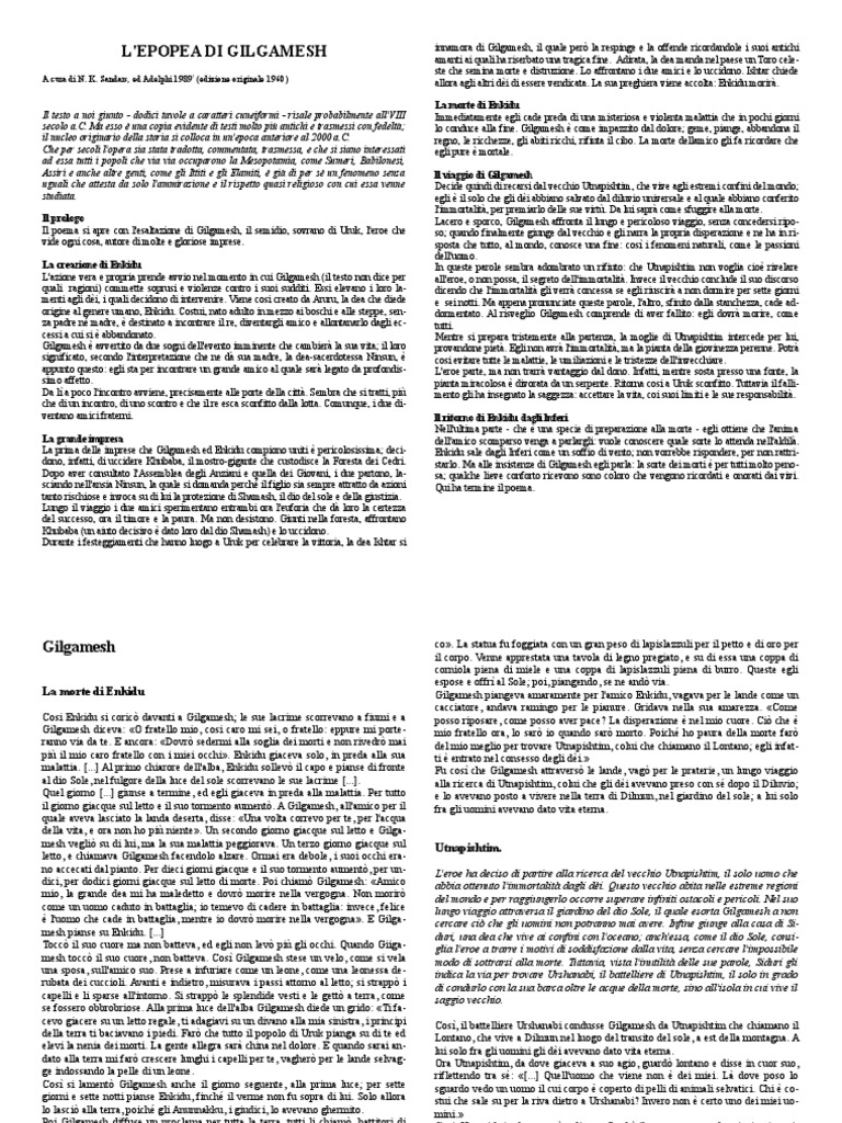 Il testo a noi giunto - dodici tavole a caratteri cuneiformi - risale probabilmente all'VIII Immediatamente egli cade preda di una misteriosa e violenta malattia che in pochi giorni