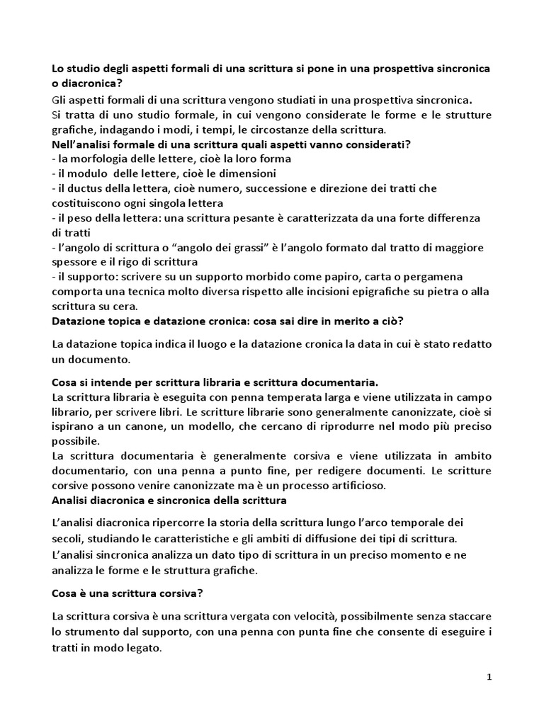 Gli aspetti formali di una scrittura vengono studiati in una prospettiva sincronica.