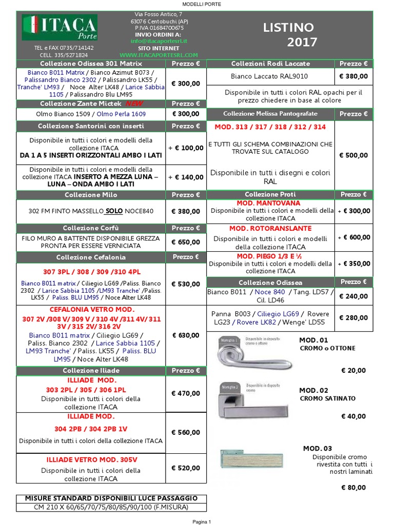 PER MODELLI A DUE ANTE E MODELLI FUORI MISURA CHIEDERE PREVENTIVO A: