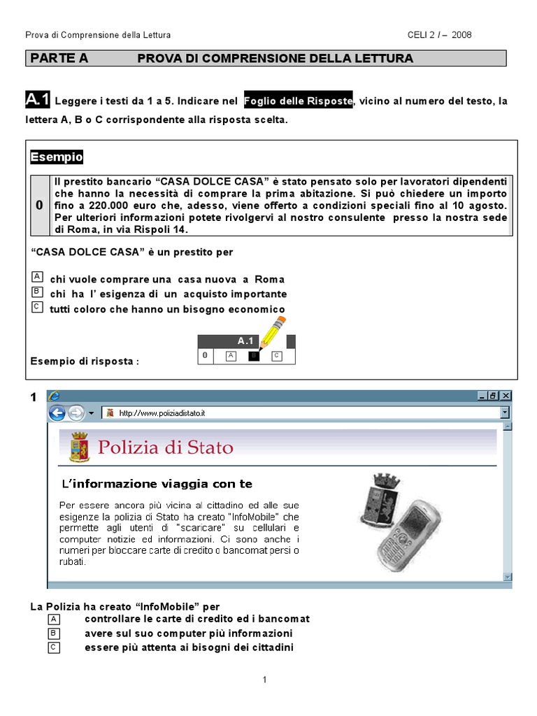 Prova di Comprensione della Lettura CELI 2 I – 2008