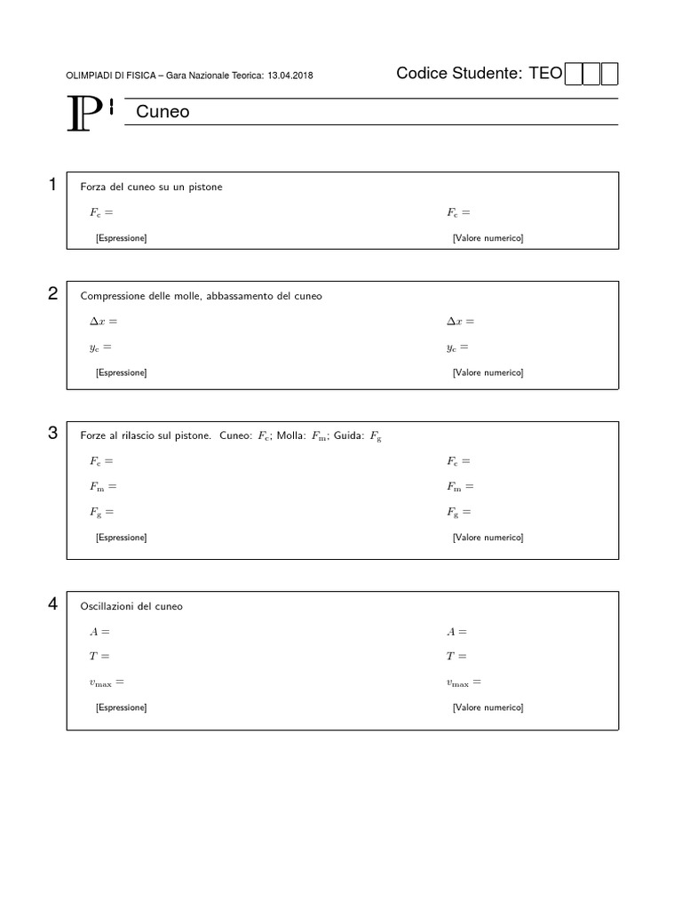 OLIMPIADI DI FISICA – Gara Nazionale Teorica: 13.04.2018 Codice Studente: TEO
