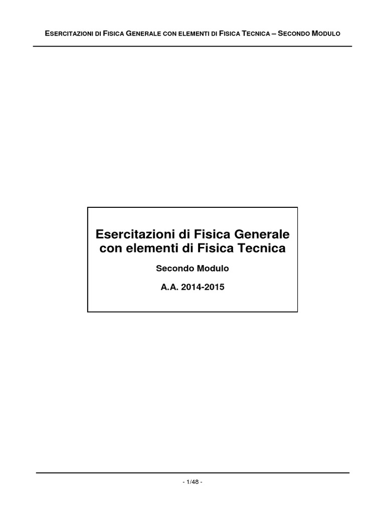 ESERCITAZIONI DI FISICA GENERALE CON ELEMENTI DI FISICA TECNICA – SECONDO MODULO