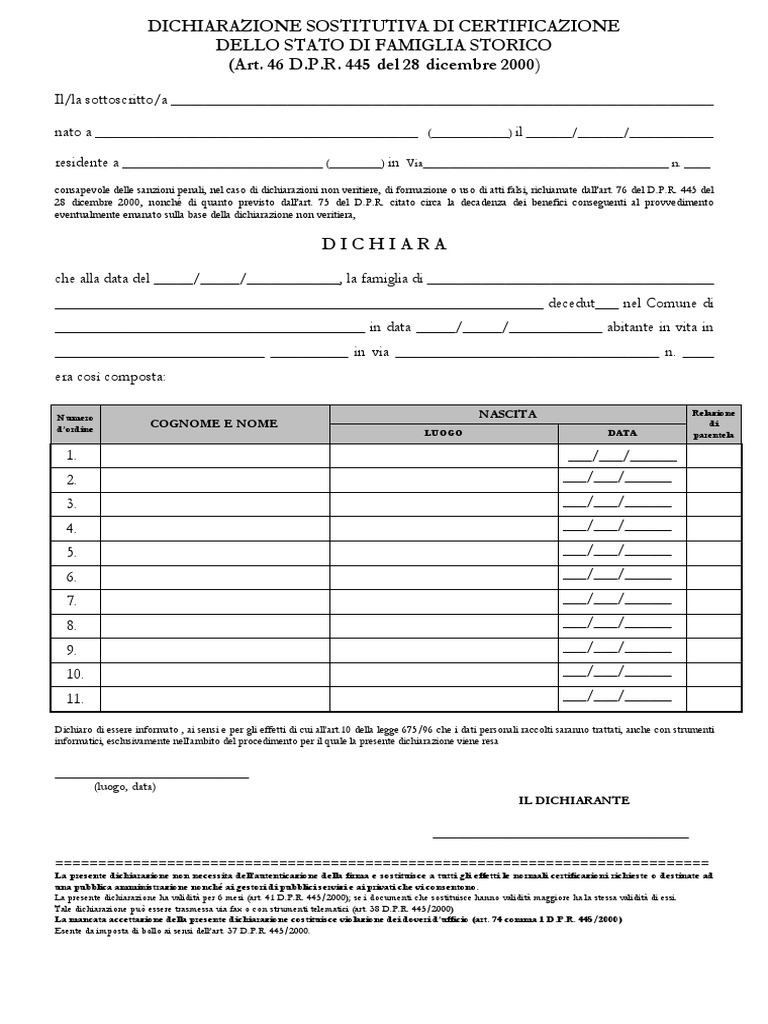 Esente da imposta di bollo ai sensi dell’art. 37 D.P.R. 445/2000.