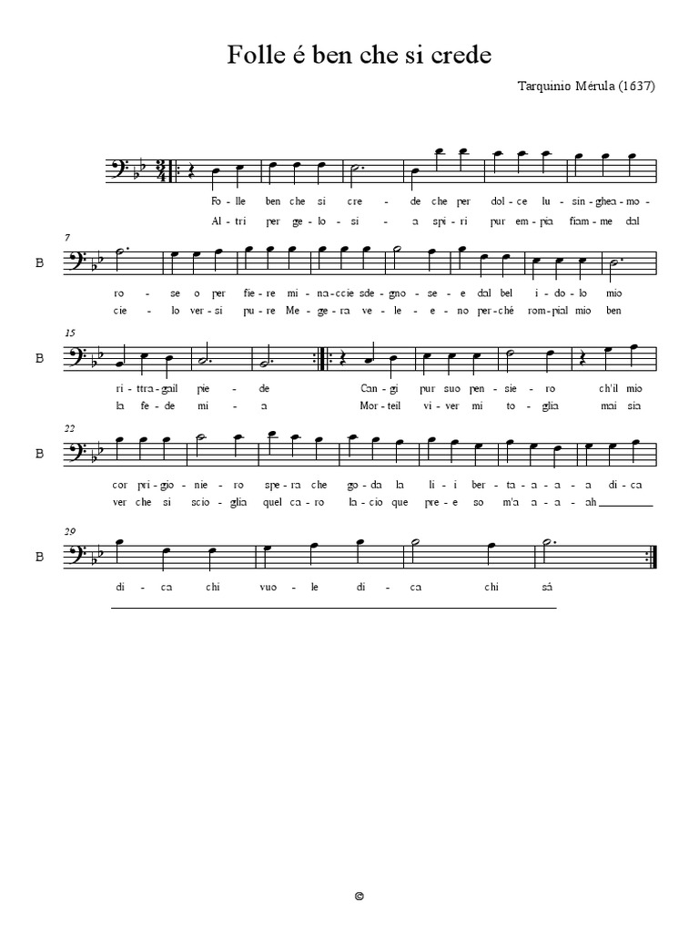 Fo - lle ben che si cre - de che per dol - ce lu - sin - ghea - mo -