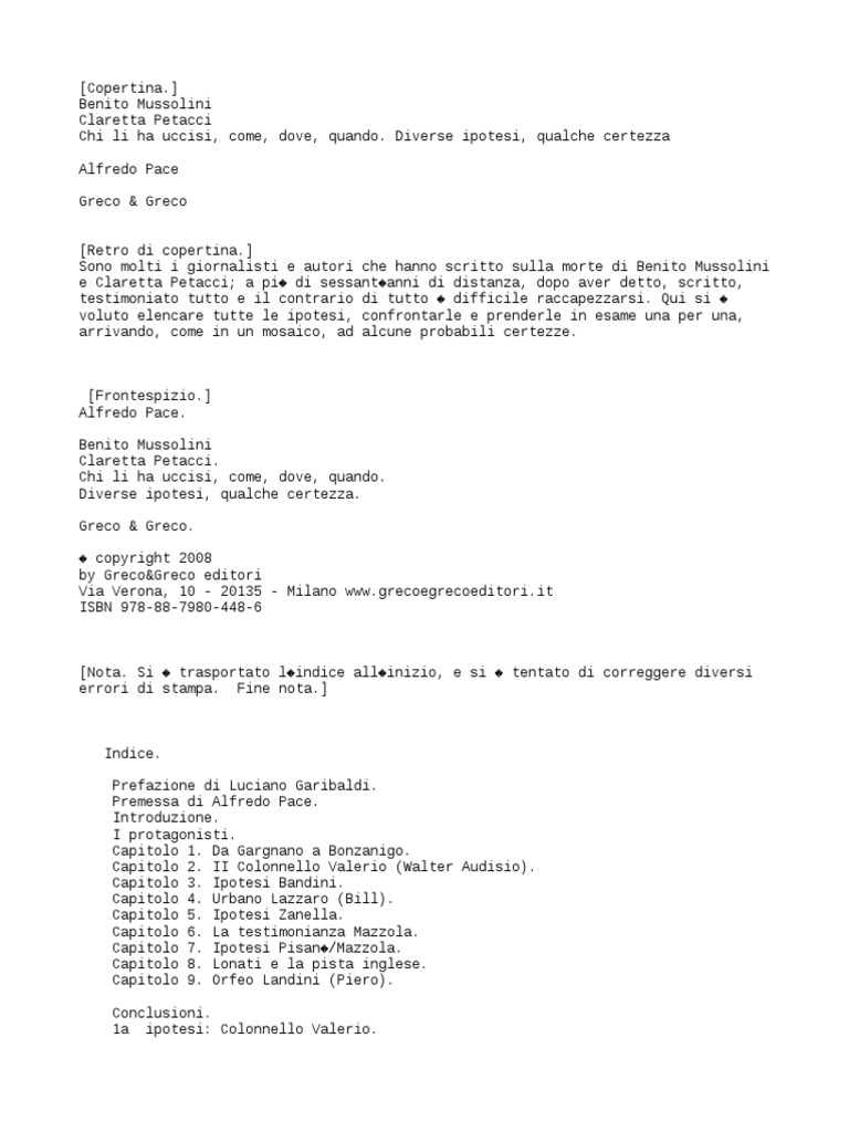 mandarla via, ma si preferisce tornare indietro sullo slargo. Claretta Petacci �