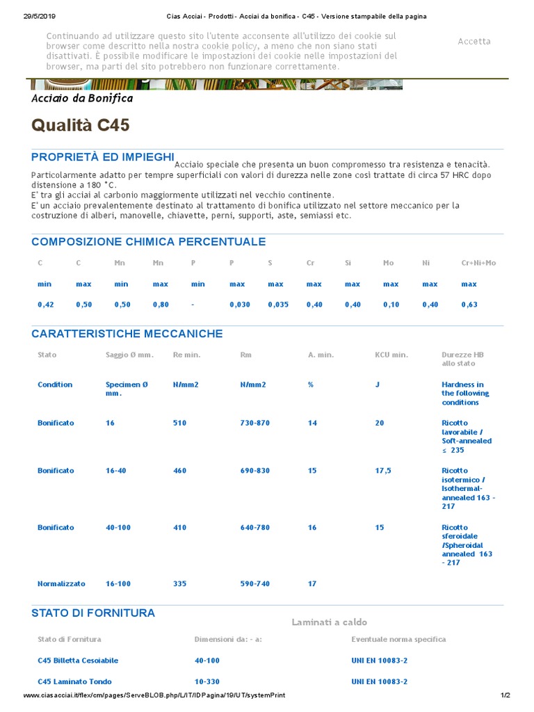 29/5/2019 Cias Acciai - Prodotti - Acciai da bonifica - C45 - Versione stampabile della pagina