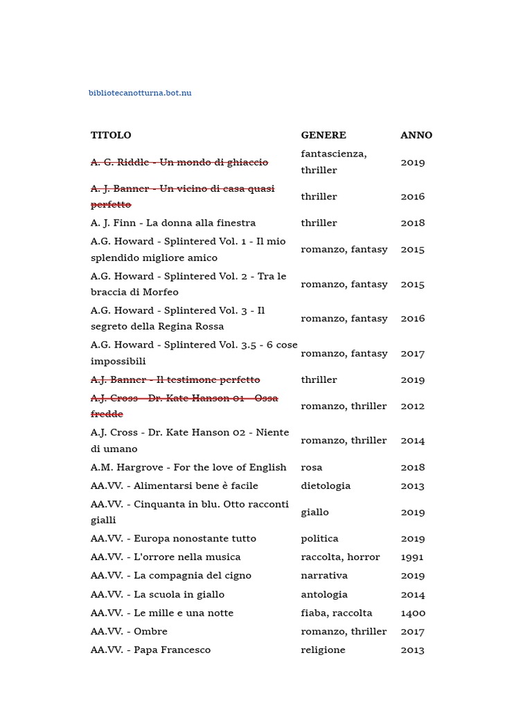 TITOLO GENERE ANNO