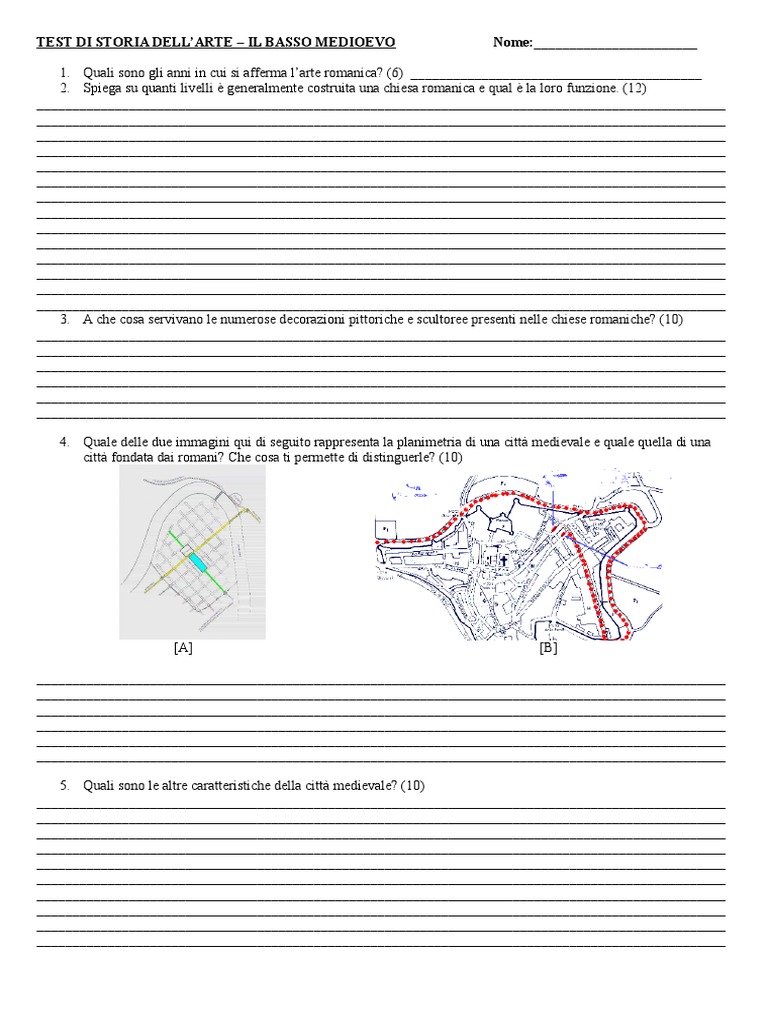 1. Quali sono gli anni in cui si afferma l’arte romanica? (6) _________________________________________