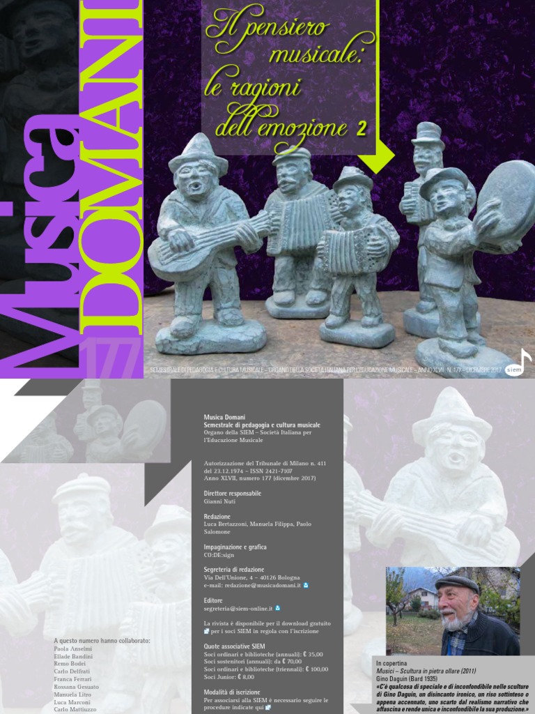 SEMESTRALE DI PEDAGOGIA E CULTURA MUSICALE – ORGANO DELLA SOCIETÀ ITALIANA PER L’EDUCAZIONE MUSICALE – ANNO XLVII . N. 177 – DICEMBRE 2017