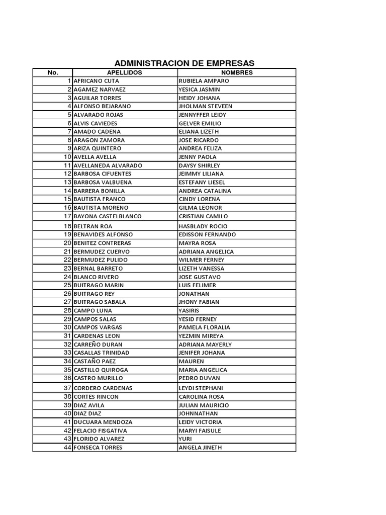 No. APELLIDOS NOMBRES