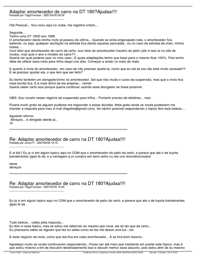 Re: Adaptar amortecedor de carro na DT 180?Ajudaa!!!!