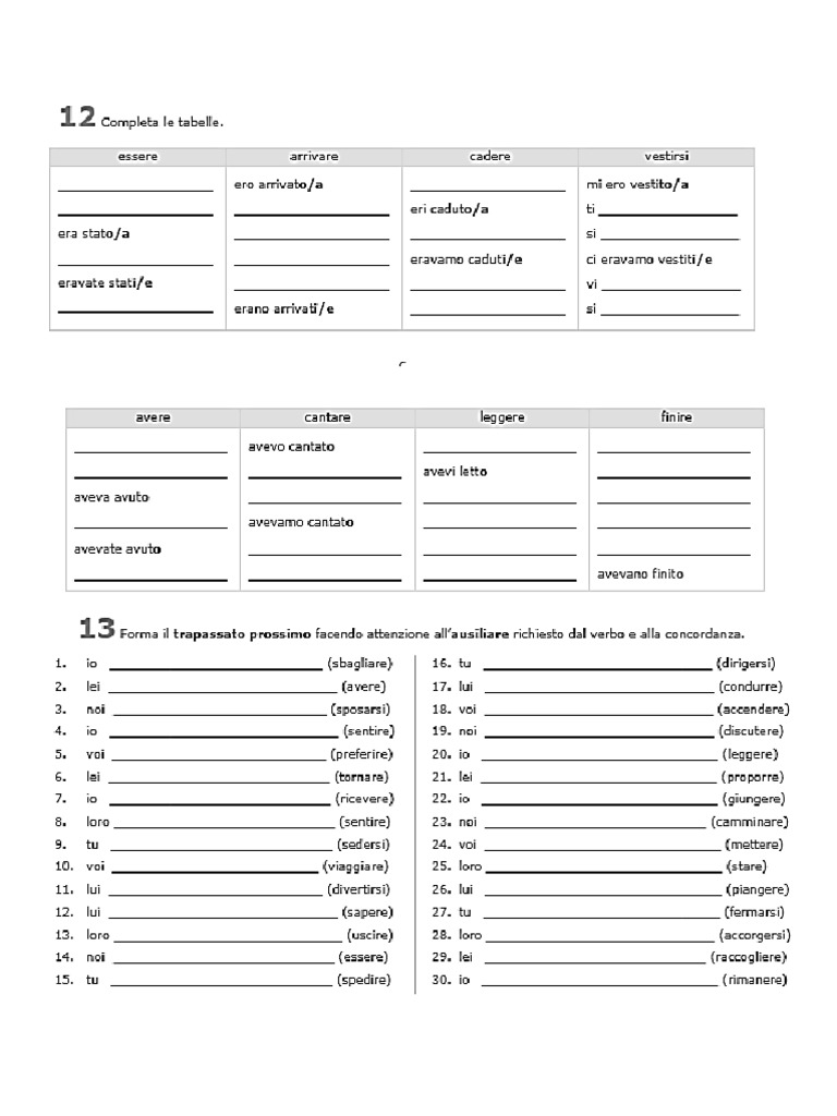 Esercizi trapassato prossimo
