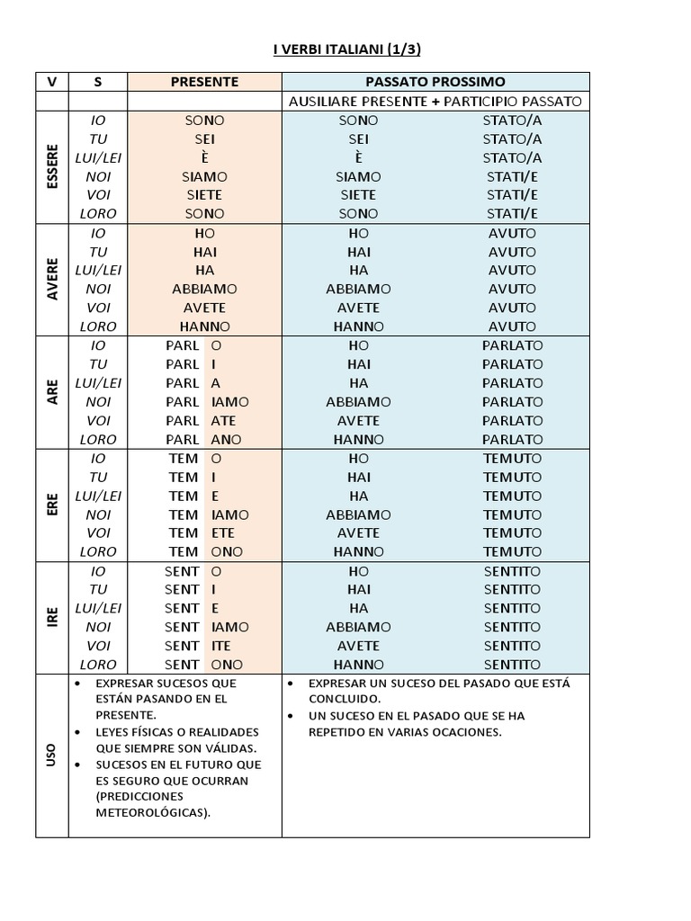 LUI/LEI PARL ERÀ AVRÀ PARLATO