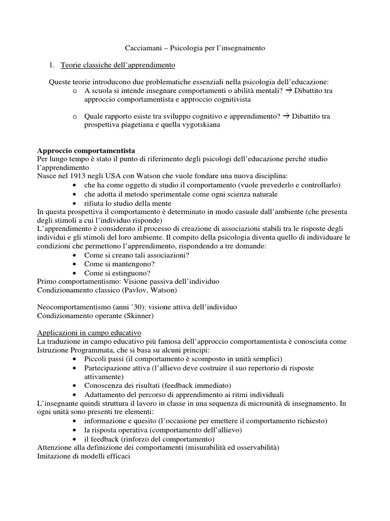 Cacciamani – Psicologia per l’insegnamento