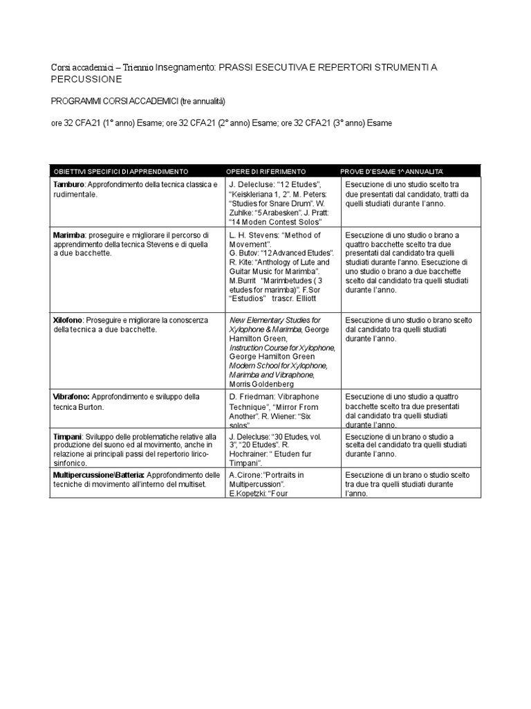 e studio di composizioni di avanzata Timpanist”. [Link] “Six Concert Pieces composizione a scelta del candidato